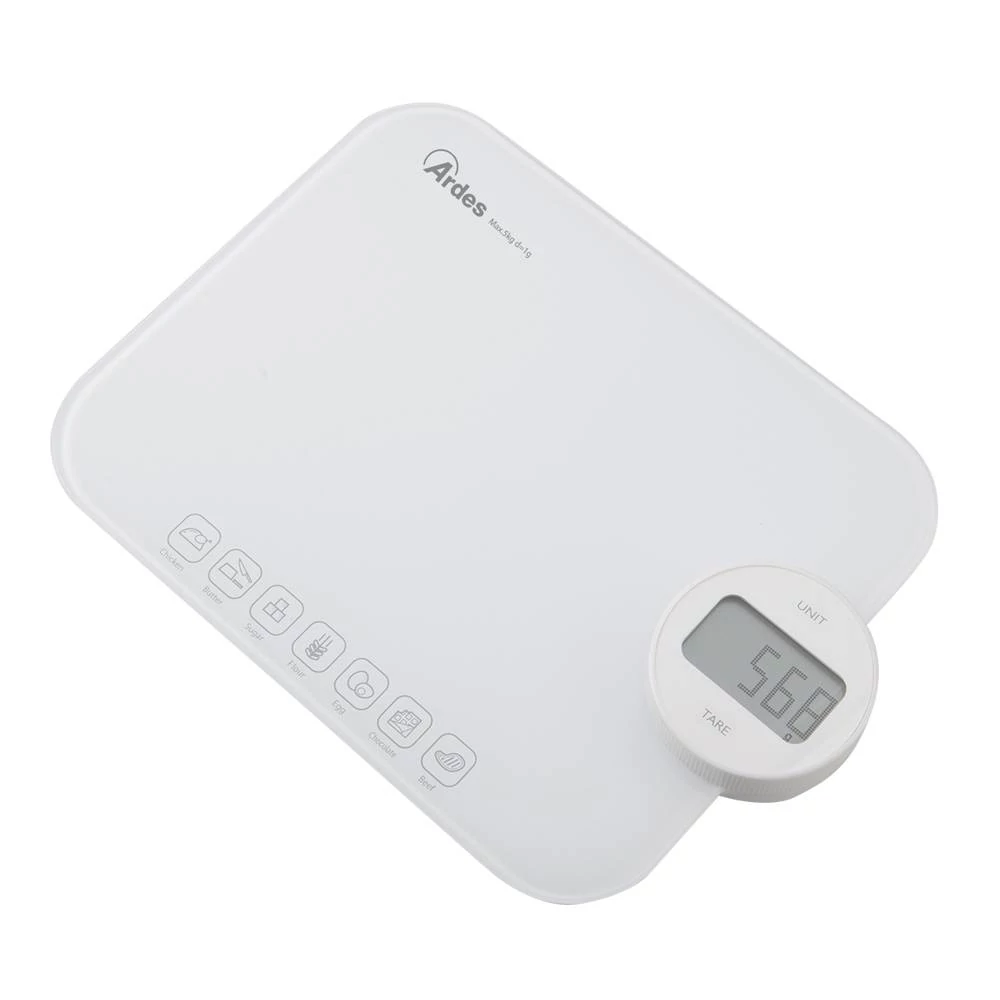 Környezetbarát, elem nélküli működtethető digitális konyhai mérleg, könnyen tisztítható, edzett üvegből készült mérő felülettel. Innovatív akkumulátor nélküli működés, manuálisan újratölthető, a kezelőgomb forgatásával. A beépített érintőgombokkal ellátott kalória-számláló lehetővé teszi a 7 leggyakrabban lemért élelmiszer kalóriájának kiszámítását és ellenőrzését: vaj, cukor, liszt, tojás, csokoládé, csirke és marhahús.
