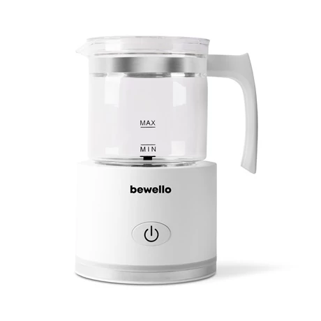 Amennyiben meleg tejhabot szeretne, öntsön friss tejet a tartályba, nyomja meg egyszer a gombot, hogy elindítsa a készüléket. Rövid időn belül habos és selymes meleg tejhabot kap, amellyel varázslatos latte-kat, kávékat és forró csokoládékat készíthet otthonában, vendégei és saját maga részére is. A könnyen tisztítható habosítófej hozzájárul a kiváló minőségű tejhab előállításához. A tartály nagy űrtartalommal és tapadásmentes felülettel rendelkezik, így a használat és a tisztítás is egyszerű. A készülék csendes működése pedig nem zavarja meg a ház nyugalmát, így élvezheti a csendes reggeleket vagy este a pihentető pillanatokat. Az otthoni kávézás szerelmeseinek elengedhetetlen kellék a Bewello termékcsalád legújabb tejhabosítója!