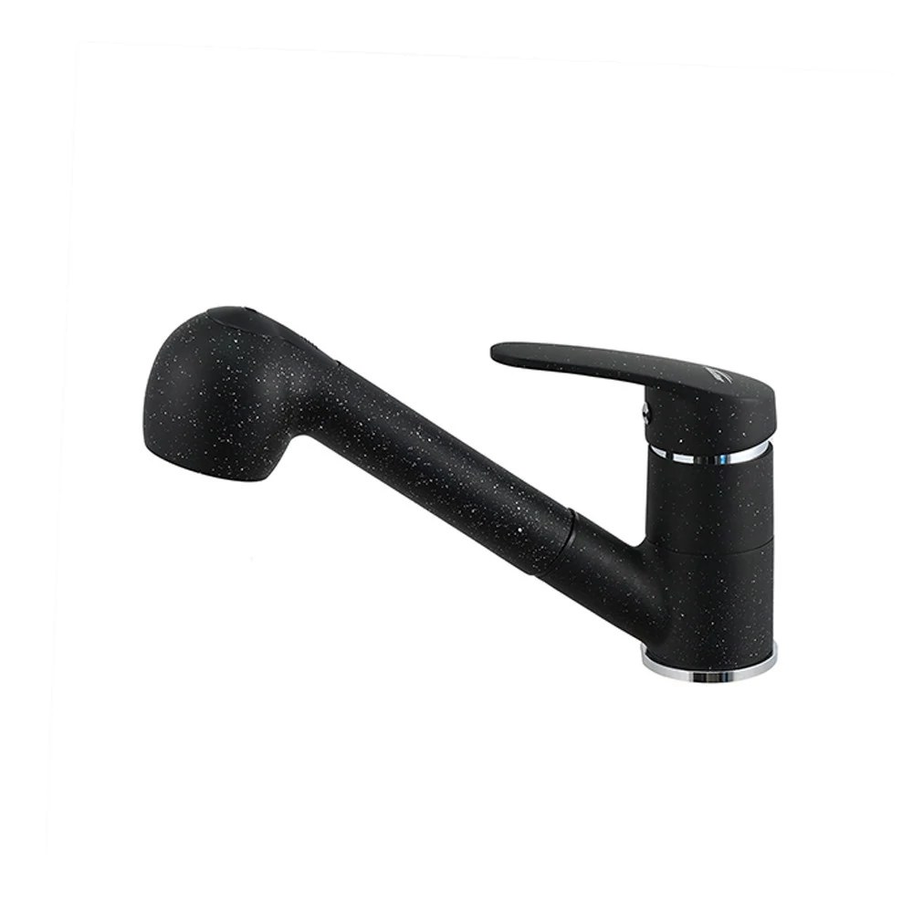 A Carol fekete színű konyhai kihúzható csaptelep a modern konyhák kedvence. Egyesíti a letisztult design eleganciáját a mindennapi funkcionalitással. fekete árnyalata tökéletesen harmonizál a gránit hatású vagy világos mosogatótálcákkal, így egységes, igényes megjelenést biztosít a konyhapultodnak.