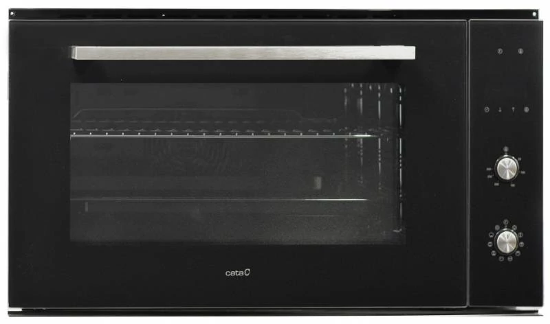 90 cm széles sütő, 8 sütőfunkció, süllyesztett gombok, érintővezérléses programozható digitális óra, 94 literes sütőtér, sütővilágítás, állítható hőfok 50-250 ºC, 5 szint a tálcák elhelyezéséhez, tripla üvegezésű sütőajtó, fekete üveg előlap, 1 db mély tepsi (5 cm), 1 db grillrács