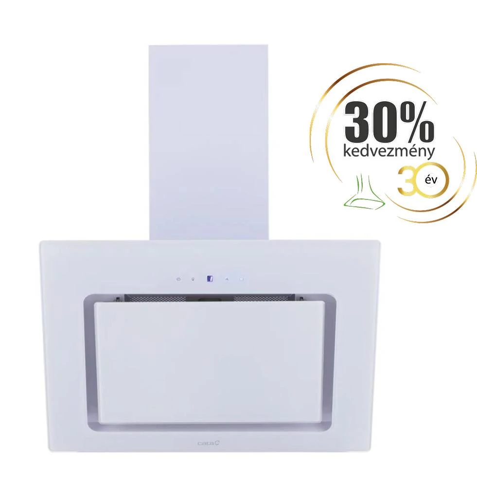A CATA AG6-A600 fehér üveges elszívó tökéletesen illik a modern konyhák világába. Maximális légszállítása 575 m³/óra. Képes működni kivezetéses és belső keringtetéses módokban egyaránt. A három sebességfokozatnak köszönhetően a páraelszívó hatékonyan működik kis- és nagy terekben egyaránt. Az erős motor alacsony zajszintet biztosít. A beépített energiatakarékos LED világítás tökélestesen biztosítja a munkapult megfelelő megvilágítást. Kivehető és akár mosogatógépben is mosható fém zsírfilterrel szerelve.