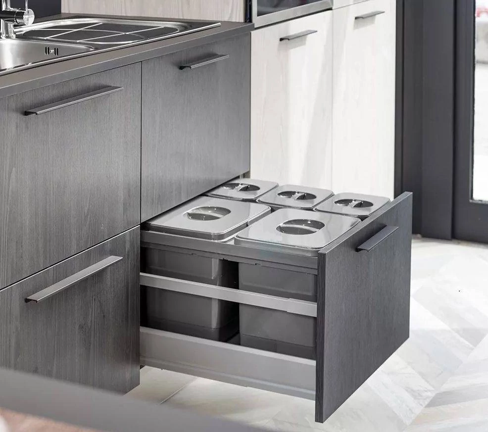 Könnyen és gyorsan összeszerelhető rendszerek, amelyek az innovatív anyagok felhasználásából és praktikus megoldások kereséséből fakadnak. Az Ekotech hulladékgyűjtő rendszereit úgy tervezték, hogy tökéletesen illeszkedjenek a modern konyhabútor szekrényeihez.