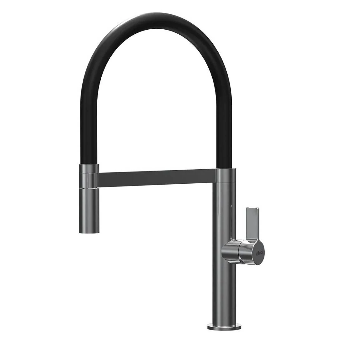 Az ELLECI Rio csaptelep a klasszikus elegancia és a korszerű megoldások tökéletes összhangját képviseli. Szatinált króm felületével és fekete szilikon kifolyócsövével egyaránt stílusos és modern, mégis visszafogottan elegáns megjelenést biztosít, amely bármely konyhába harmonikusan illeszkedik.