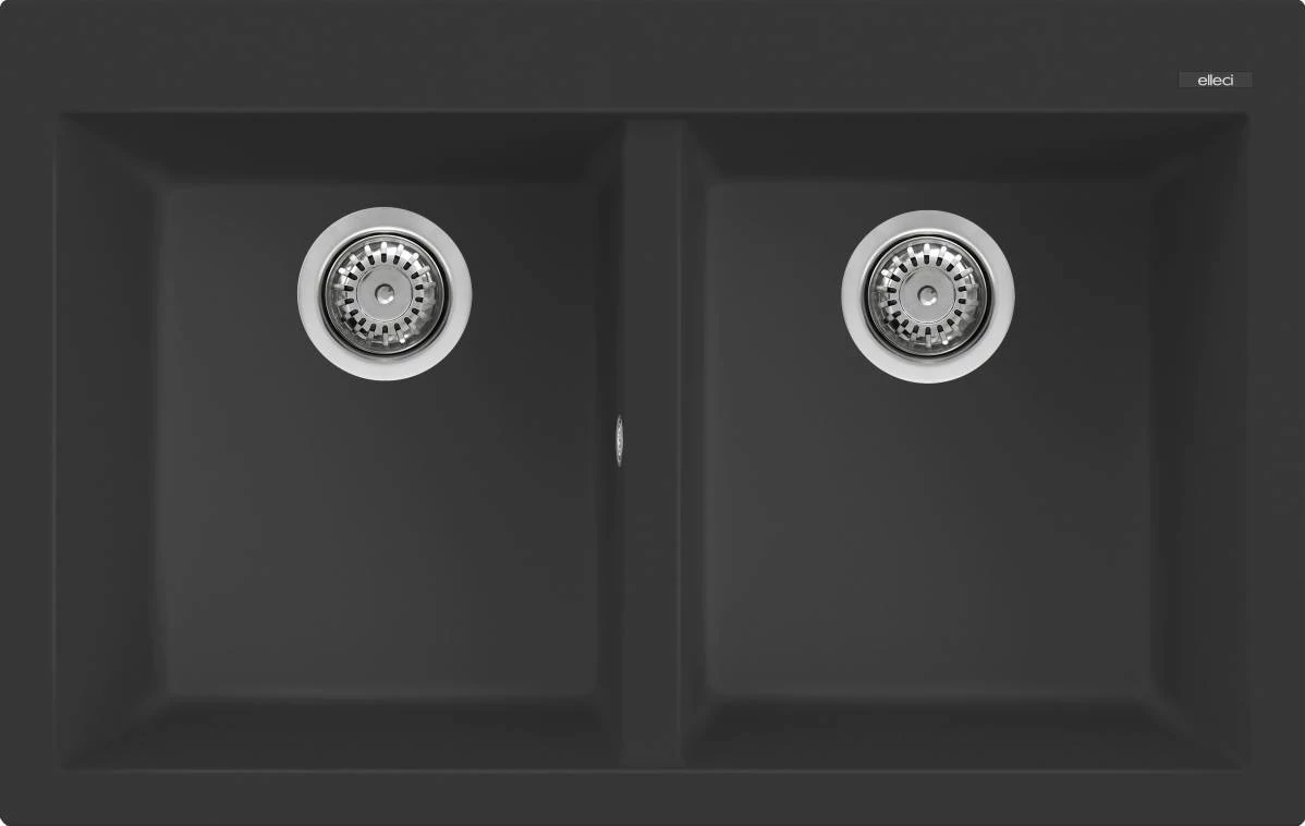 ELLECI Quadra 350 Granitek kétmedencés mosogatótálca (G40 Nero) – Olasz elegancia, időtálló minőség a konyha középpontjában