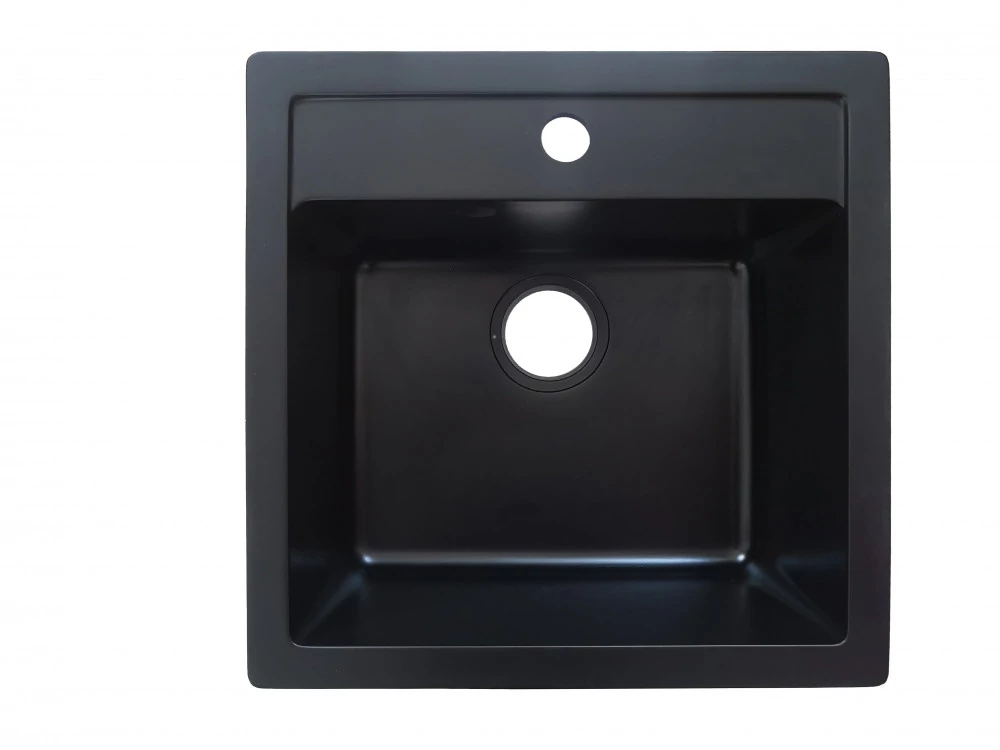 Laveo RAB MINI szemcsés fekete csepptálcás mosogató helytakarékos szifonnal, csaplyuktakaró dugóval
