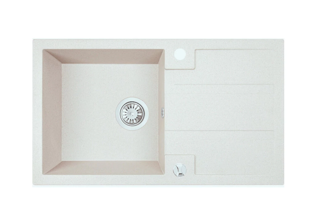 Laveo RINA egymedencés jázmin mosogató csaplyukkal, automata dugókiemelős, helytakarékos szifonnal