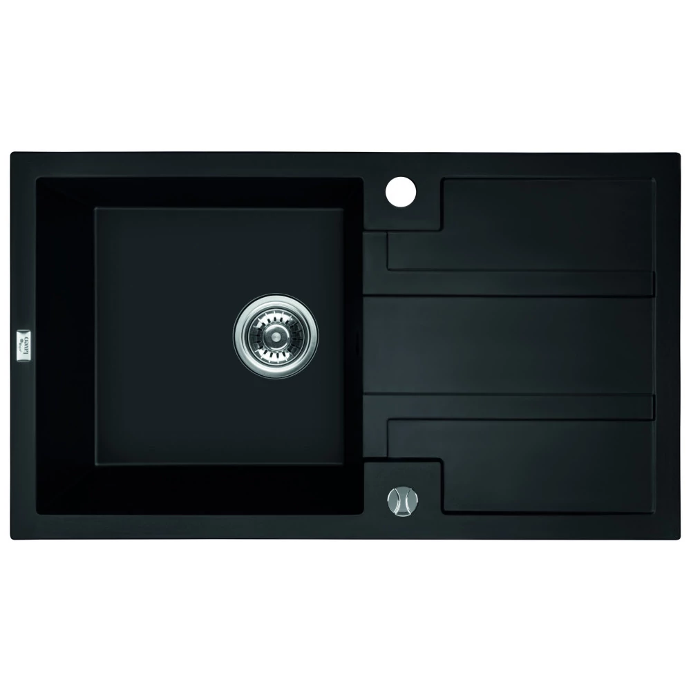 Laveo RINA egymedencés matt fekete mosogató csaplyukkal, automata dugókiemelős, helytakarékos szifonnal