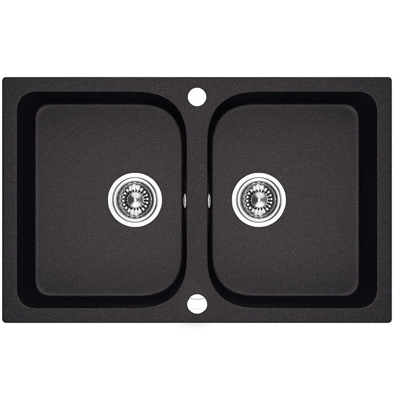 Laveo CELIA fehér kétmedencés mosogató dugókiemelős helytakarékos szifonnal