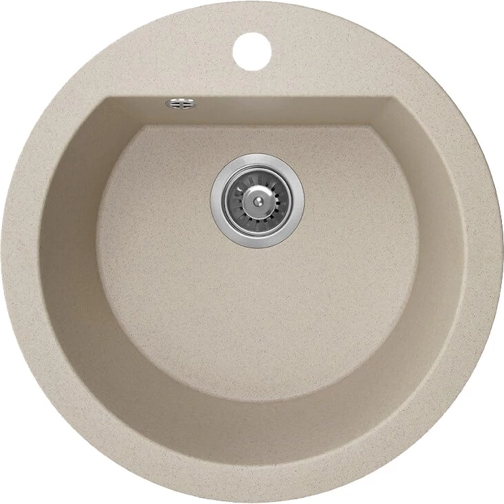 Termékleírás Kompozit mosogatóKialakítás: 1 medenceMéret: Ø510x205 mmSzekrény méret: 500 mmFelület: bézsHelytakarékos szifonnal és dugókiemelővel
