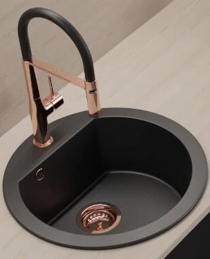 Laveo RINA egymedencés szemcsés fekete mosogató csaplyukkal, automata dugókiemelős, helytakarékos szifonnal