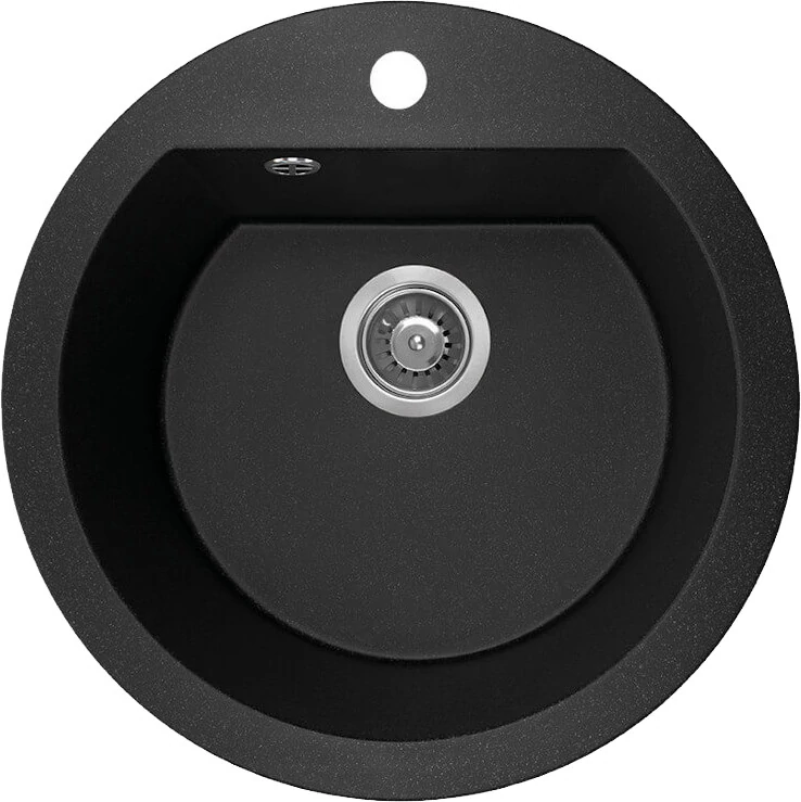 Termékleírás Kompozit mosogatóKialakítás: 1 medenceMéret: Ø510x205 mmSzekrény méret: 500 mmFelület: feketeHelytakarékos szifonnal és dugókiemelővel
