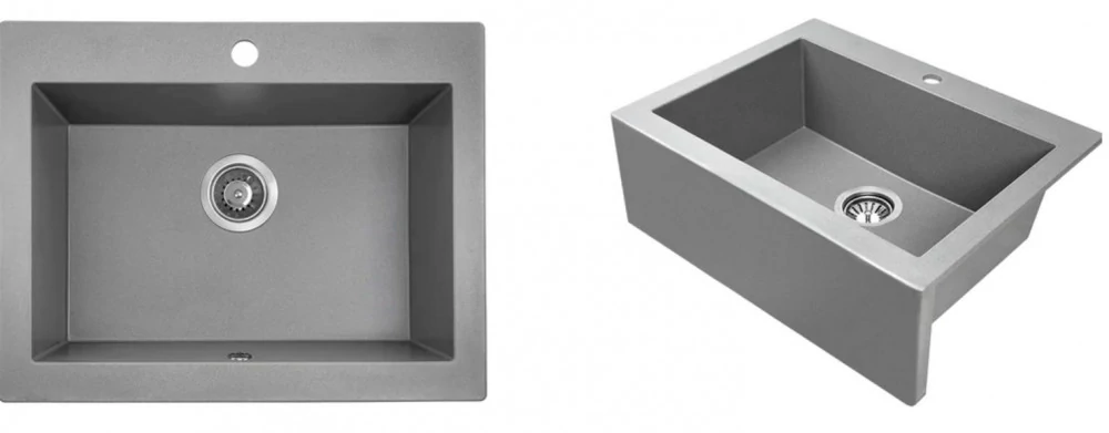 Termékleírás Kompozit mosogatóKialakítás: 1 medenceMéret: 490x580x220 mmSzekrény méret: 600 mmFelület: szürkeHelytakarékos szifonnal és dugókiemelővel