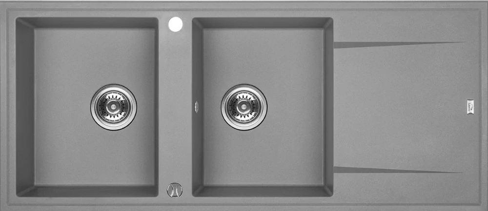 Laveo BARBADOS szürke kétmedencés szett álló csappal, dugókiemelős helytakarékos szifonnal