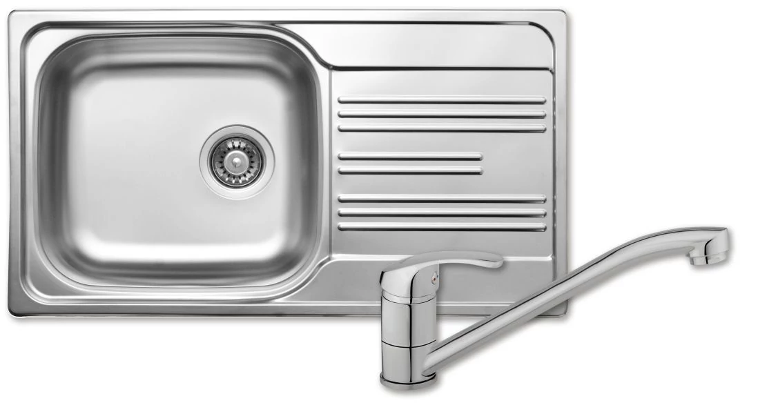 LIVINOX egymedencés, csepptálcás, natúr, rozsdamentes acél mosogató, forgatható, 3 1/2" lefolyógarnitúrával.
