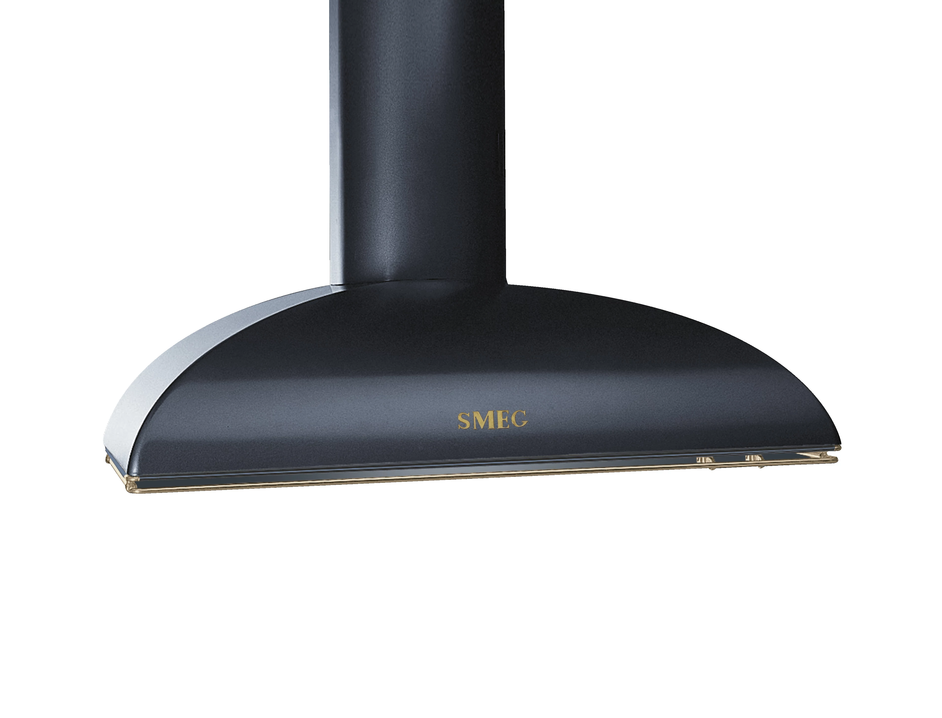 SMEG KÜRTŐS FALI PÁRAELSZÍVÓ COLONIAL DESIGN antracit színben bronz díszítéssel 90 cm széles 3+1 sebességfokozat LED világítás légszállítás (IEC): 331-547 (turbo 788) m3/h zajszint: 52-63 (71) dB A energiaosztály