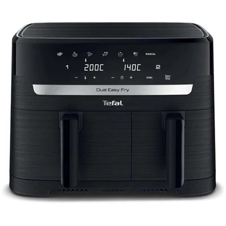 Egészséges ételek az egész család számára! A Tefal Dual Easy Fry forrólevegős sütő két fiókkal rendelkezik, így a teljes fogást, körettel együtt el tudja egyszerre készíteni.