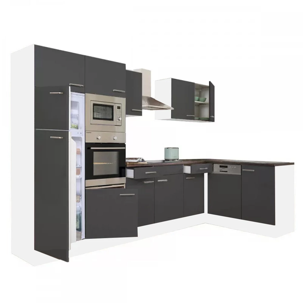 Yorki 340 sarok konyhablokk fehér korpusz, selyemfényű antracit fronttal. A tökéletes konyha megteremtője!