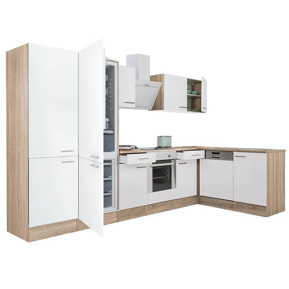 Yorki 340 sarok konyhablokk sonoma tölgy korpusz,selyemfényű fehér fronttal. A tökéletes konyha megteremtője!
