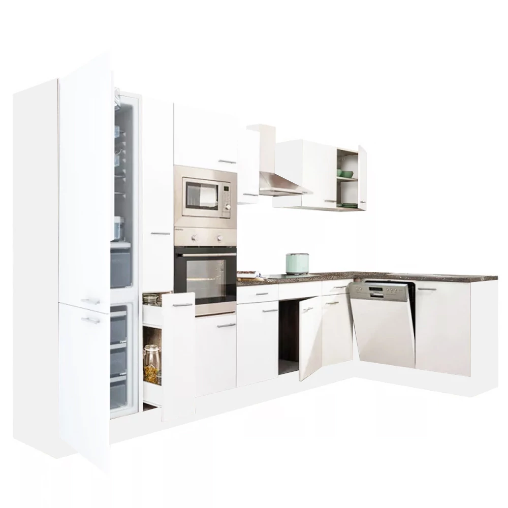 Yorki 370 sarok konyhablokk fehér korpusz,selyemfényű fehér fronttal. A tökéletes konyha megteremtője!