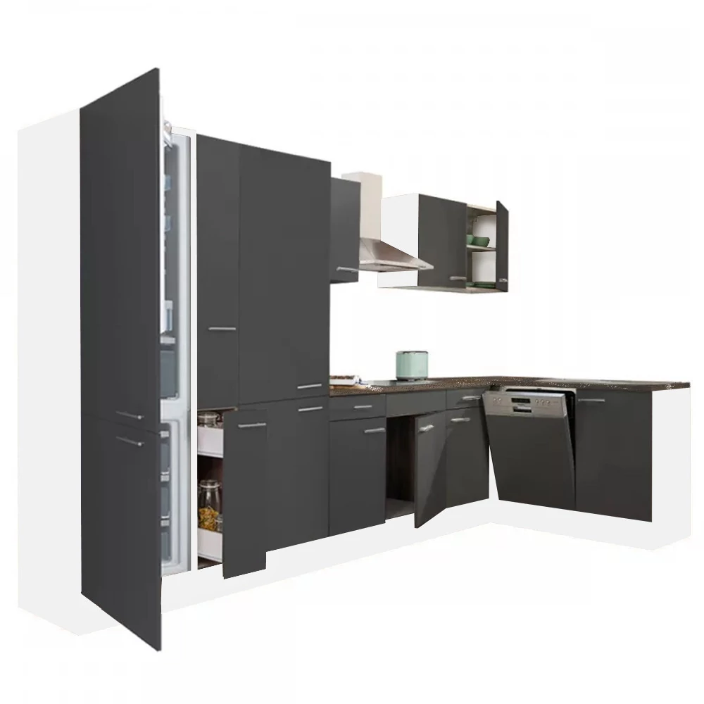 Yorki 370 sarok konyhablokk fehér korpusz, selyemfényű antracit fronttal. A tökéletes konyha megteremtője!